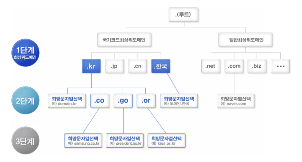 네트워크에서 이러한 도메인 이름을 숫자로 된 IP 주소로 변환해주는 TCP/IP 서비스를 DNS라 하며 계층 구조를 가지는 분산데이터베이스 구조이다.
