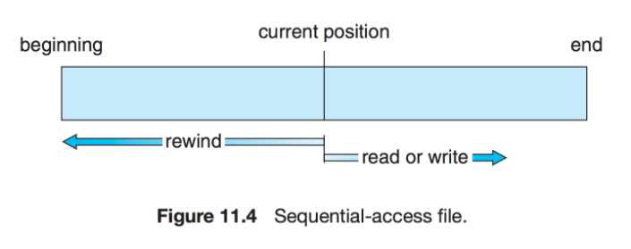 기본적인 접근 방법으로 file pointer를 따라 파일 정보가 차례차례 처리된다. read(), write()는 자동으로 file pointer를 변경시키고 lseek()를 사용해 file pointer를 조정할 수 있다.