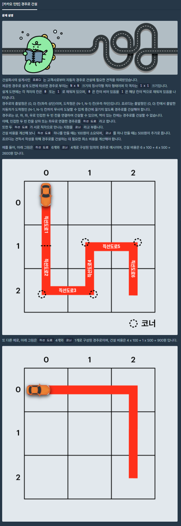 코딩테스트 연습 - 경주로 건설